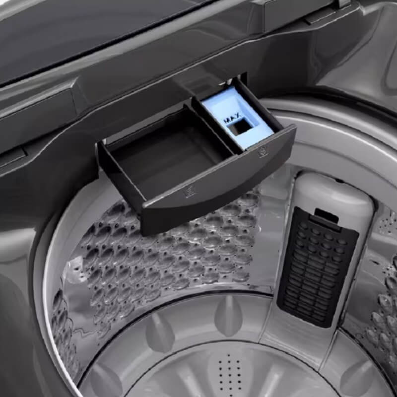 - Carga Superior con tapa de vidrio templado: resistente, moderna y práctica.